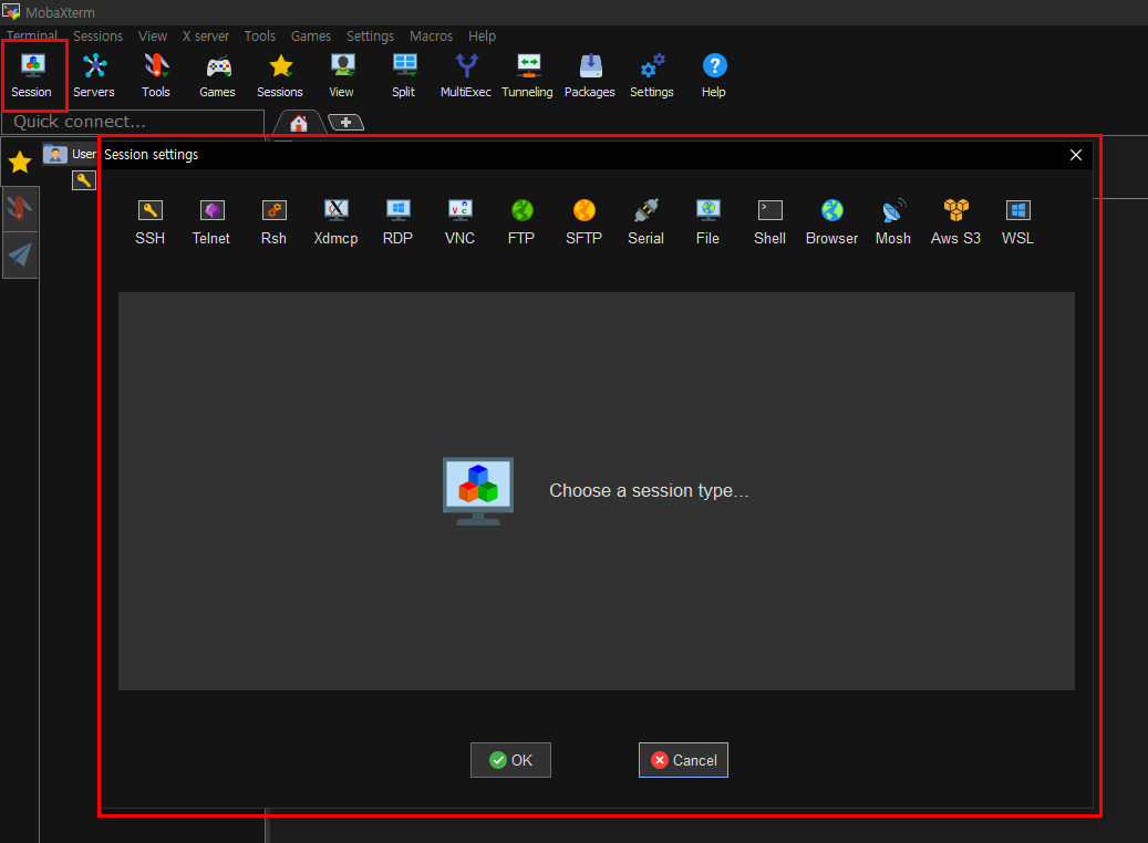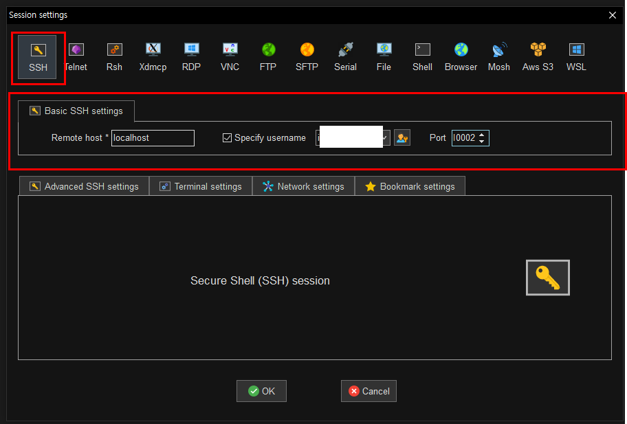MobaXterm을 이용하여 단순 SSH 통신을 하기 위해서는 Session에서만 설정해주면 될 것 같습니다.